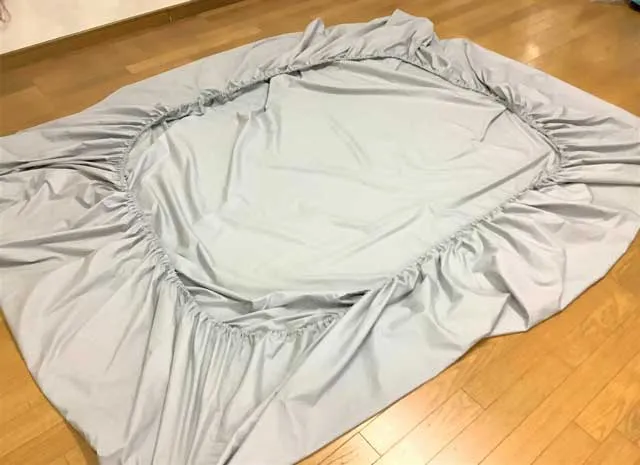 千葉県のお客様から、オーダーメイドでボックスシーツお仕立てのご依頼をいただきました。 マットレスサイズは244×195×45cm。 日本の規格ではないサイズですが、おそらくセミダブルサイズのマットレスを2枚合わせたサイズ…