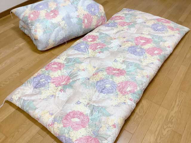兵庫県のお客様から、「敷布団が重たいので、軽くしてほしい」とご相談をいただきました。 当店でお仕立てした105×205cm約6キロ入りの敷布団ですが、年齢的なことから毎日の上げ下ろしが大変だそうで、取り扱いやすい軽めの敷…