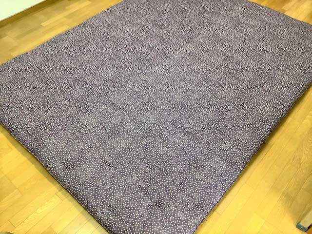 兵庫県のお客様から、「リビングで家族みんながくつろぐための、大きなこたつ敷布団を作ってほしい」とご依頼をいただきました。 使わないシングルの掛け布団2枚の綿を打ち直し、230×300cmのこたつ敷布団をお仕立てしました。…