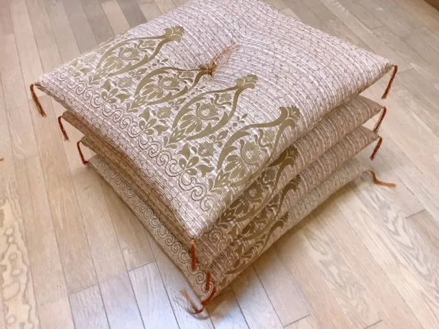 兵庫県のお客様から、正絹の着物生地で法要座布団を仕立ててほしいとご注文いただきました。 着物生地の幅を最大限生かし、サイズは通常の法要座布団よりも若干小さめになっております。 綿100%インド綿を入れ、座りやすい上質な座…