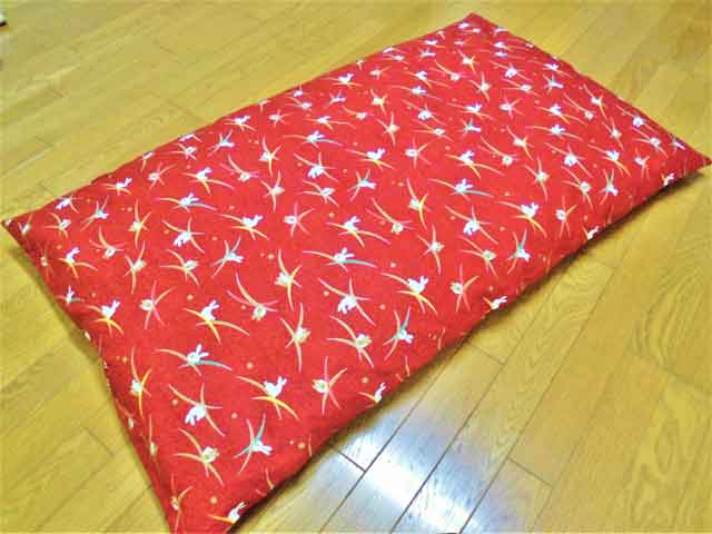 兵庫県のお客様より、「ゆったりと座れる大きな座布団を作ってほしい」とのご依頼をいただきました。 足を伸ばしてくつろいだり、寝転んだりして使いたいとのご希望でしたので、通常の銘仙判サイズ(約55×59cm)よりも大きい、約…