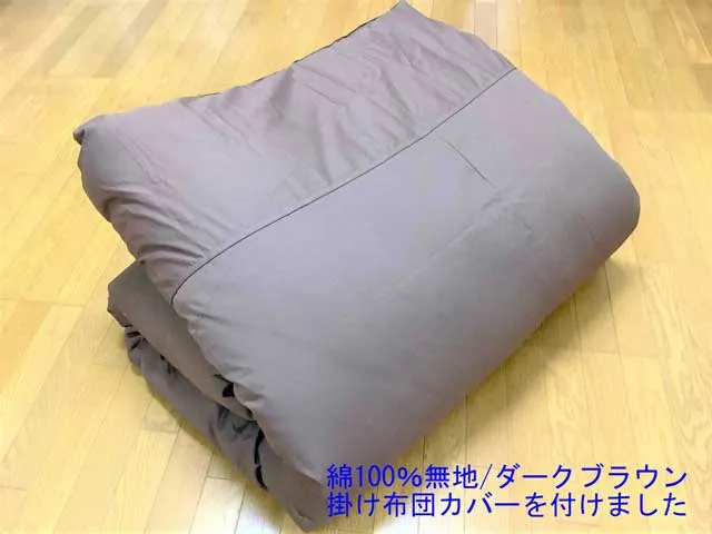 この度は、上質な綿100%無地ブロード/ダークブラウンの掛カバーを付けて納品しました。