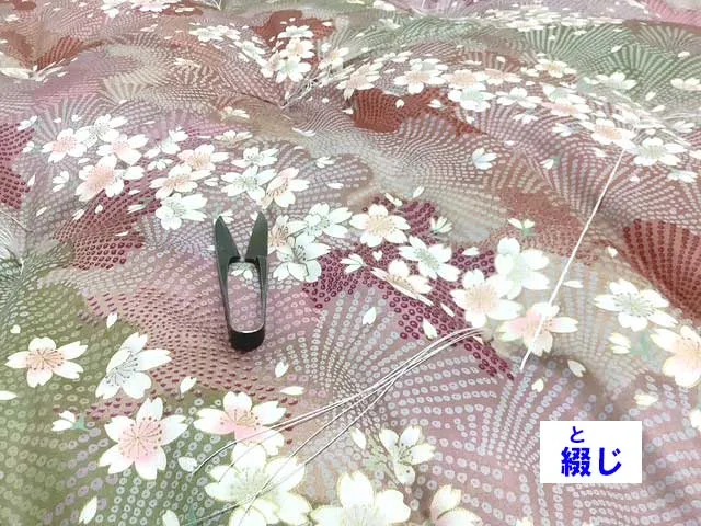 綴じは生地と綿がズレないようにするための物で、当店は職人が一針一針手作業で綴じていきます。