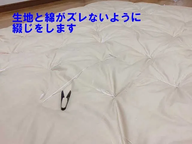 この綴じによって、生地と綿がズレるのを防ぎ、中綿を片寄りにくくします。