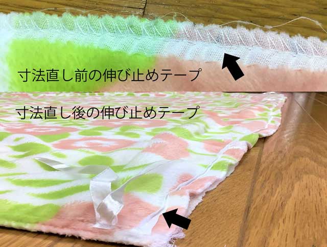 この度お持ち込みの毛布カバーは、伸び止めテープを使用しておりました。