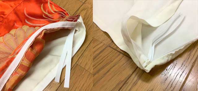 一枚は表を絹、裏を綿100%のサテンで、もう一枚は両面綿100%サテンでお仕立てしました。