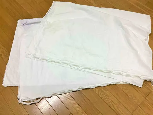 白の綿100%ブロード生地は、150×210cmになるように裁断し、縫製いたします。