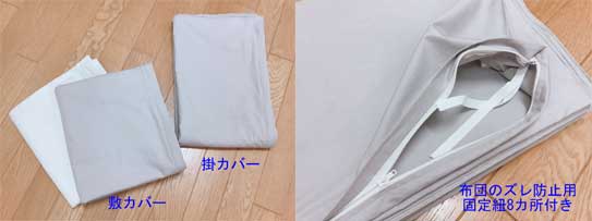 天然素材100%のカバーは、肌に優しく、蒸れにくいため、布団の良さを引き立ててくれます。