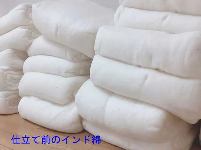 掛け布団の中綿は、繊維の長く柔らかな風合いのメキシコ綿100%を、敷布団の中綿には、繊維が短く硬めの仕上がりになるインド綿で仕立てました。