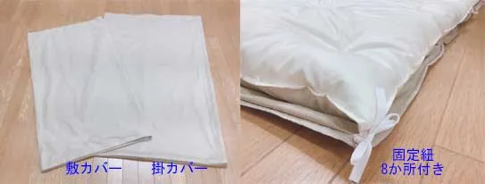掛カバーには、掛け布団のズレ防止用固定紐を8か所つけております。