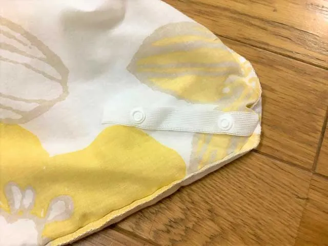 掛カバーには、布団のズレ防止のための紐やボタン付きのテープがついていますので、裁断した生地から丁寧に取り外し、付け直します。