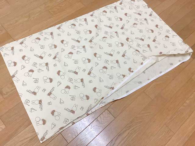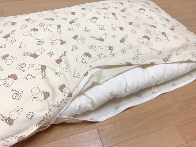 この度のお客様は、70×120cm綿100%のヌード敷布団と、ミッフィー柄のかわいい敷カバーをセットでご注文いただきました。