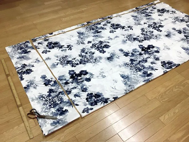 お客様から届いた掛けカバーを、220×210cmになるように裁断していきます。