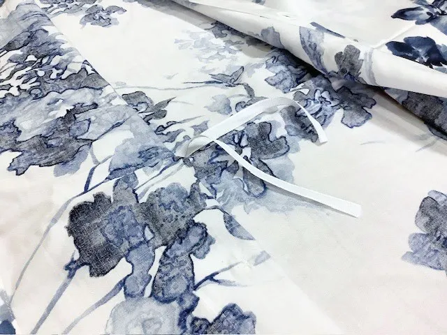 海外製のカバーには、掛け布団を固定する留めひもが付いていなかったり、少なかったりするため、当店では留めひもをご希望のお客様には、新規でお付けしております。