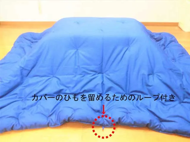 当店のヌードこたつ掛け布団には、カバーのひもを留めるためのループを8か所お付けしております。