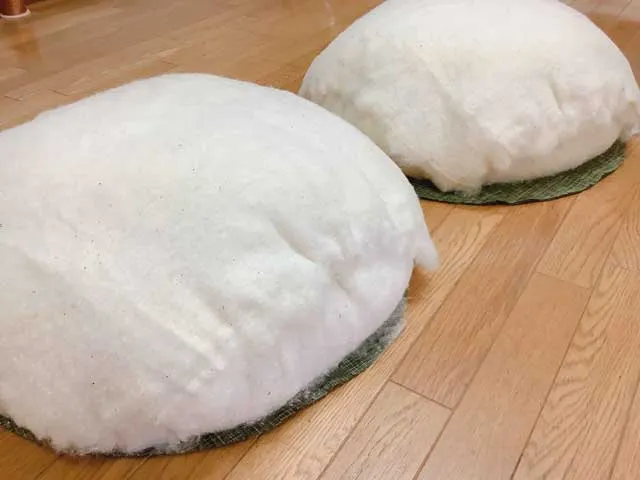 前回、こたつ布団で余った生地で丸座布団を1枚仕立てました。丸座布団ももちろん職人の手作業です。