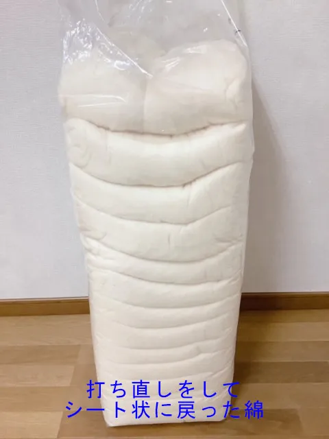 中綿は上質なメキシコ綿100%で、油分もたっぷりありましたので打ち直しが可能です。
