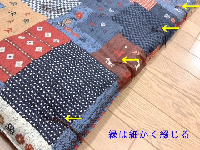 綿を生地に入れ終えると、生地と綿がズレないように綴じをしていきます。