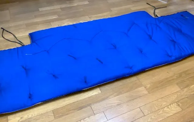 仕立てられた4枚の長座布団にはマジックテープが縫いつけられており、それぞれ固定できるようになっております。