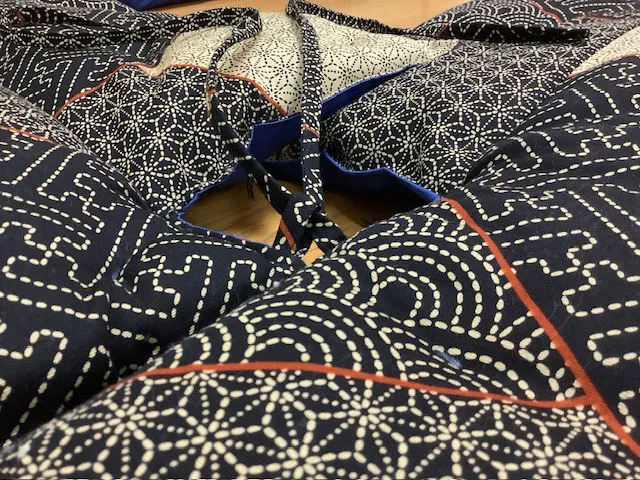 生地は上面を上品で落ち着きのある「刺し子柄(三昧)」、下面を無地ブロードの青色をお選びになられました。