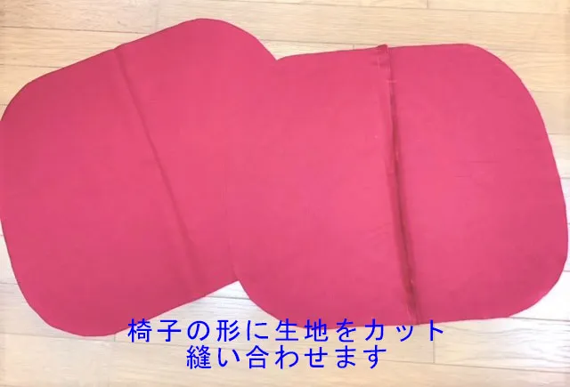馬蹄型座布団・背もたれクッションと同じサイズ、同じ形に生地をカットし、縫い合わせます。