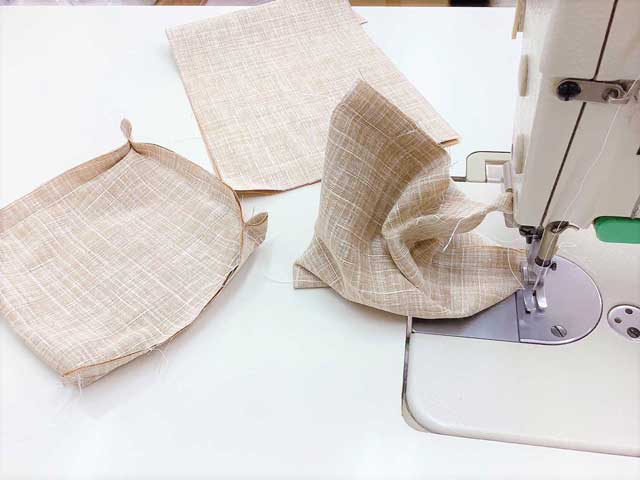 生地を13×13cmに仕上がるように裁断し、ミシンで縫い上げます。