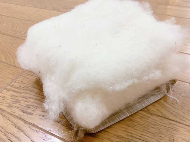 残った打ち直しの綿で座卓の脚用座布団を仕立て