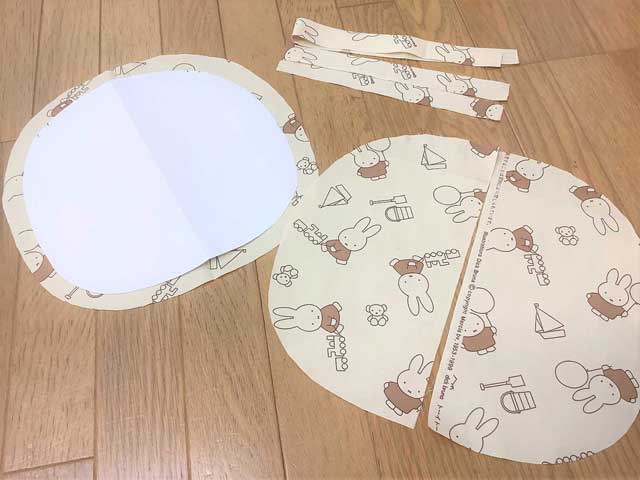 綿を生地に入れた後は、入れ口を閉じ、生地と綿がズレないように綴じ(とじ)を施し、完成です。