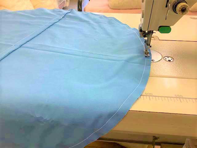 当店の丸座布団と丸座布団カバーは、縫製・仕立てすべてを布団職人が店内で手作りしております。