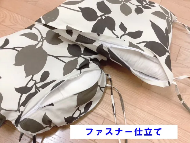 ファスナーの位置は、長方形座布団は横に、馬蹄型座布団は上部に、邪魔にならない位置に付けました。