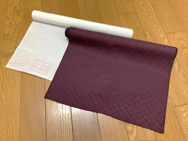 お持ち込みの着物生地は2反。無地/白と地模様/紫の正絹生地です。